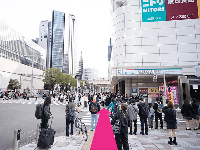 | アクセス | JR各線名古屋駅から徒歩5分 近鉄名古屋駅から徒歩5分 名鉄名古屋駅から徒歩5分 サンロード(地下街)を抜け、ミヤコ地下街4番出口より徒歩1分 |