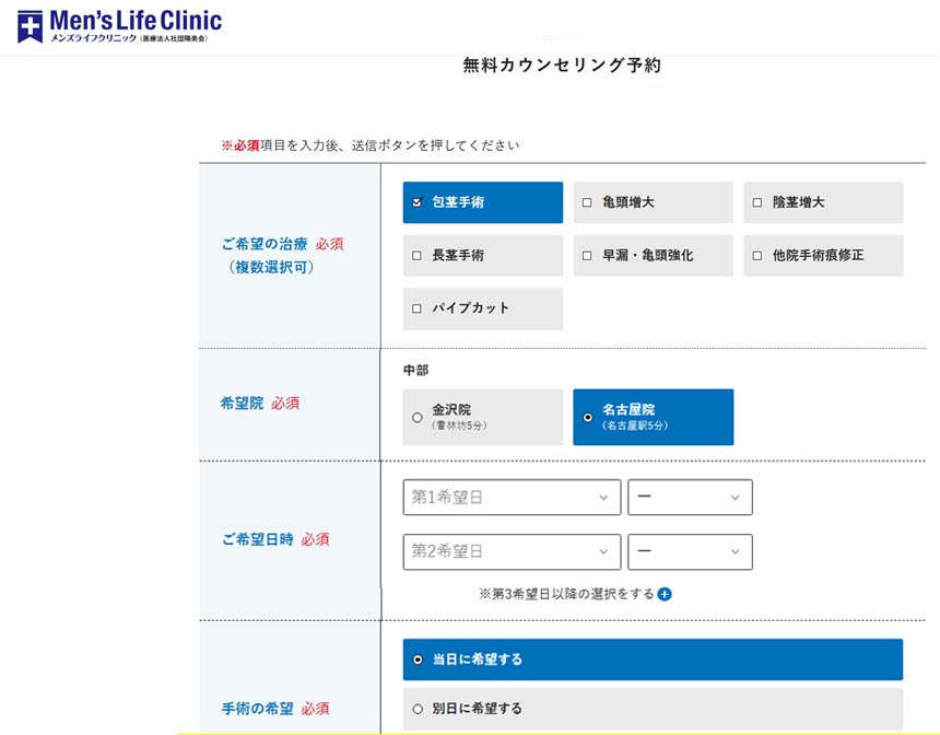 メンズライフクリニック名古屋院の予約方法