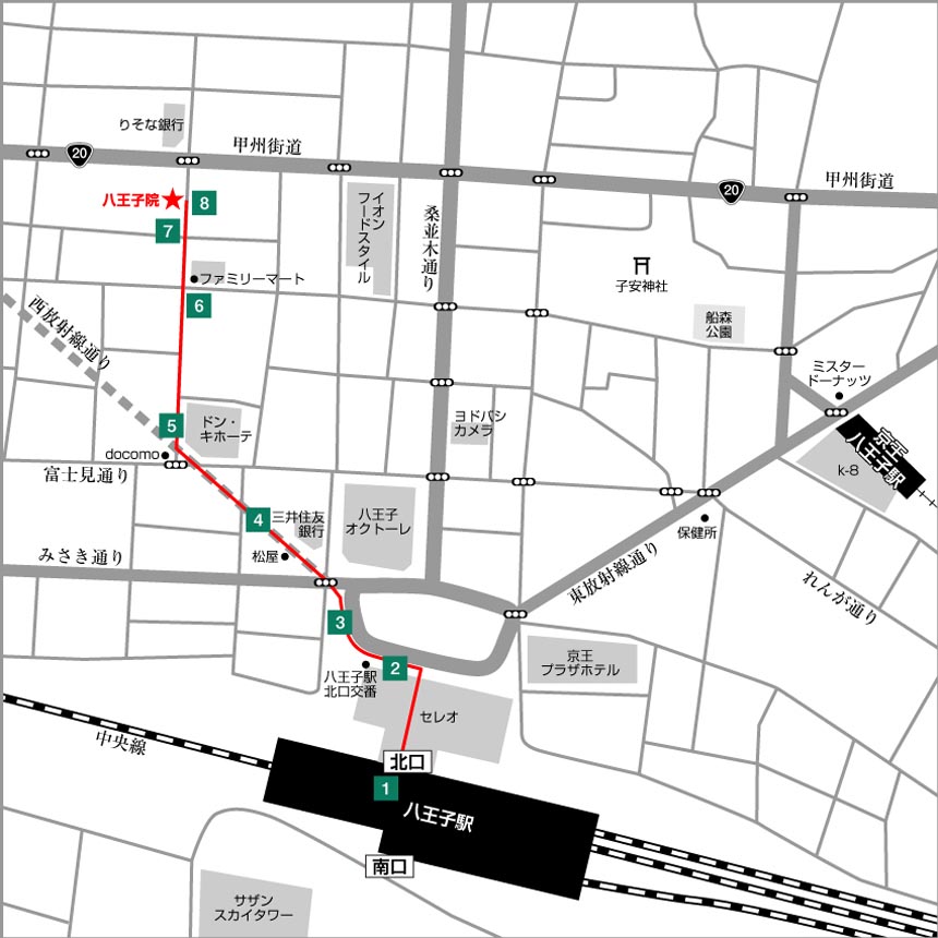 八王子院は、JR八王子駅 北口より徒歩5分の行きやすい場所に在ります。