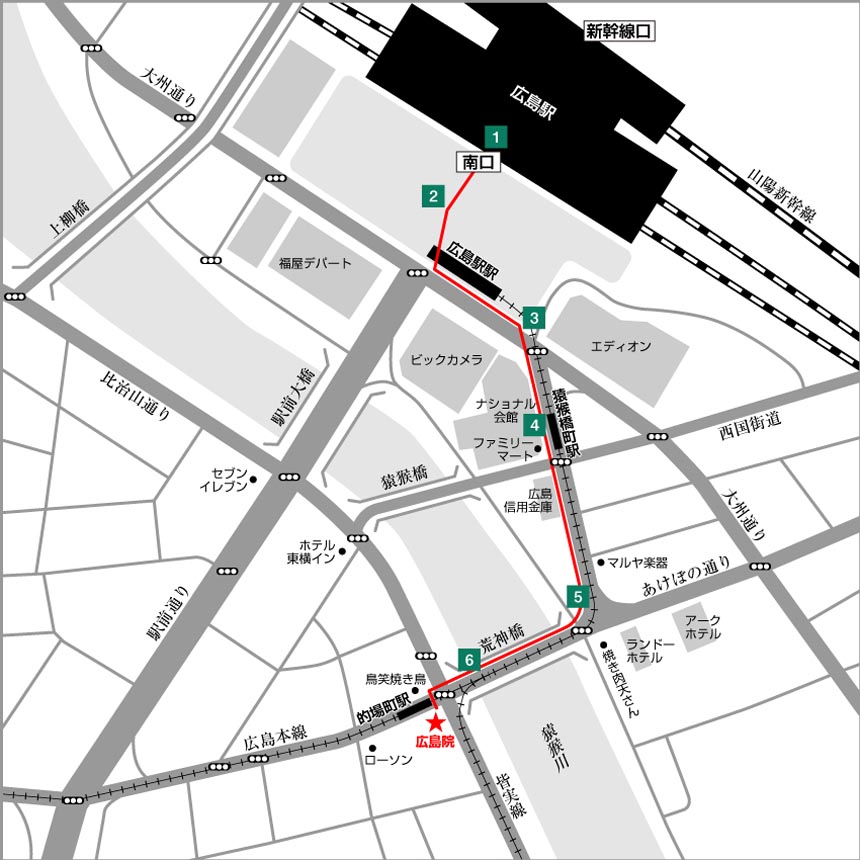 広島院は、JR広島駅 南口より徒歩5分の行きやすい場所に在ります。