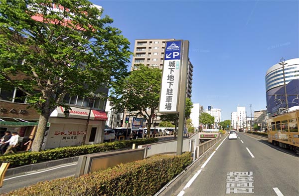 | 2.城下地下駐車場 | 徒歩6分 | 【全日】営業時間7:30~23:00 7:30~23:00 最初の1時間/300円 以降30分/150円 夜間20:00~8:00最大500円 | 174台 | 岡山市北区表町1丁目城下地下1号 |
