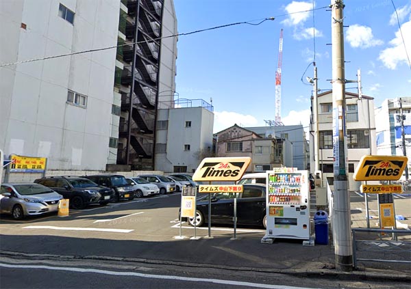 | 1.タイムズ中山下第9 | 徒歩3分 | 【全日】 00:00-00:00 40分/200円 最大料金 【月~金】08:00-20:00 1000円 20:00-08:00 400円 【土日祝】08:00-20:00 1100円 20:00-08:00 400円 | 13台 | 岡山市北区中山下2-3 |