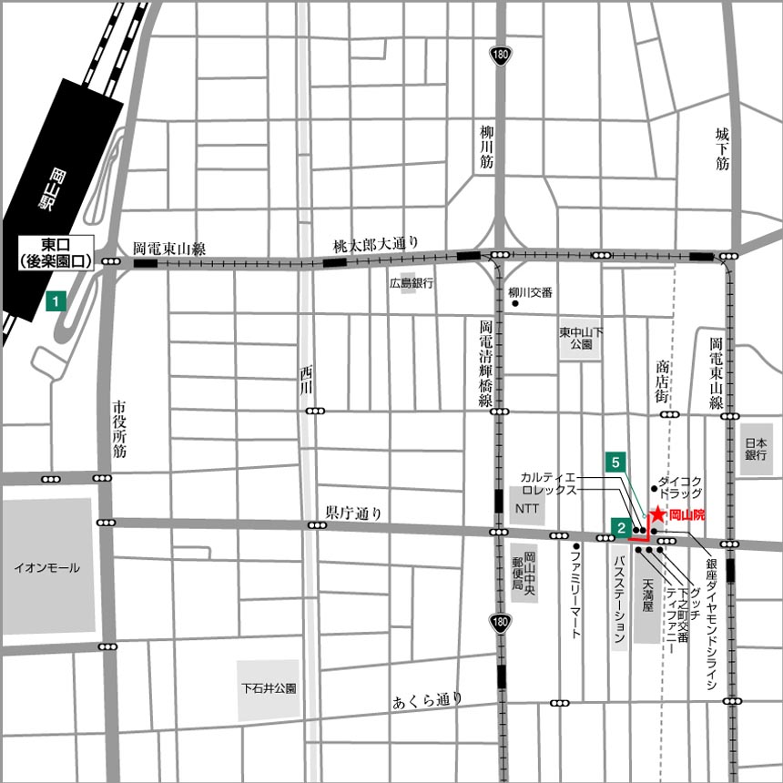 東京ノーストクリニック岡山院は、JR岡山駅 より岡電バスが便利です。