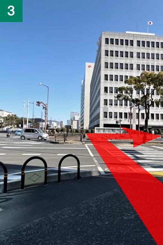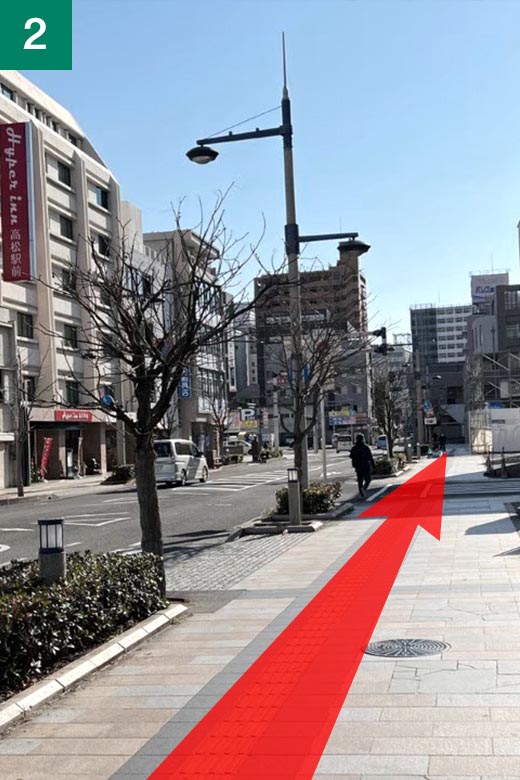 JR高松駅東口を出て右へ100m道なりに行きミニストップの信号へ