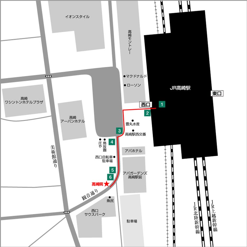 高崎院は、JR高崎駅 西口より徒歩2分の便利な場所に在ります。