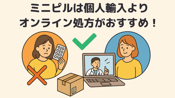 ミニピルは、個人輸入よりも医師の診療を受けられるオンライン処方のほうが断然おすすめです。