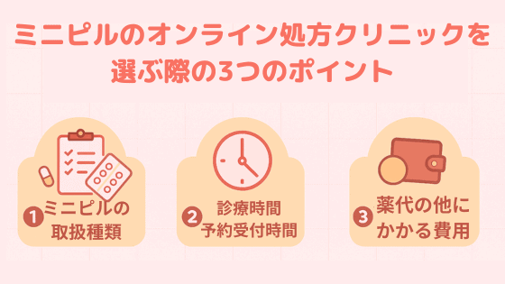 ミニピルをオンラインで処方しているクリニック10院を比較しました。