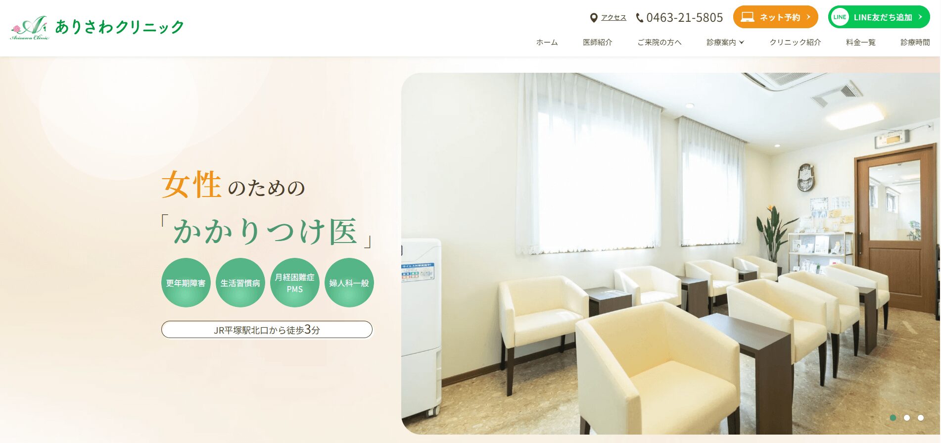 「ありさわクリニック」は秦野駅からは車で37分ですが、平塚駅北口から徒歩3分という好立地がおすすめポイントです。