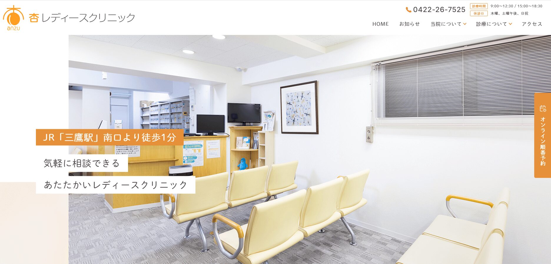 「きりんウィメンズクリニック武蔵野」は三鷹駅より徒歩7分という好立地がおすすめポイントです。
