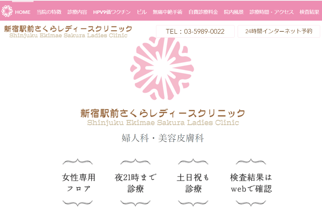 1.新宿駅前婦人科クリニック【徒歩3分/オンライン可/女性医師】