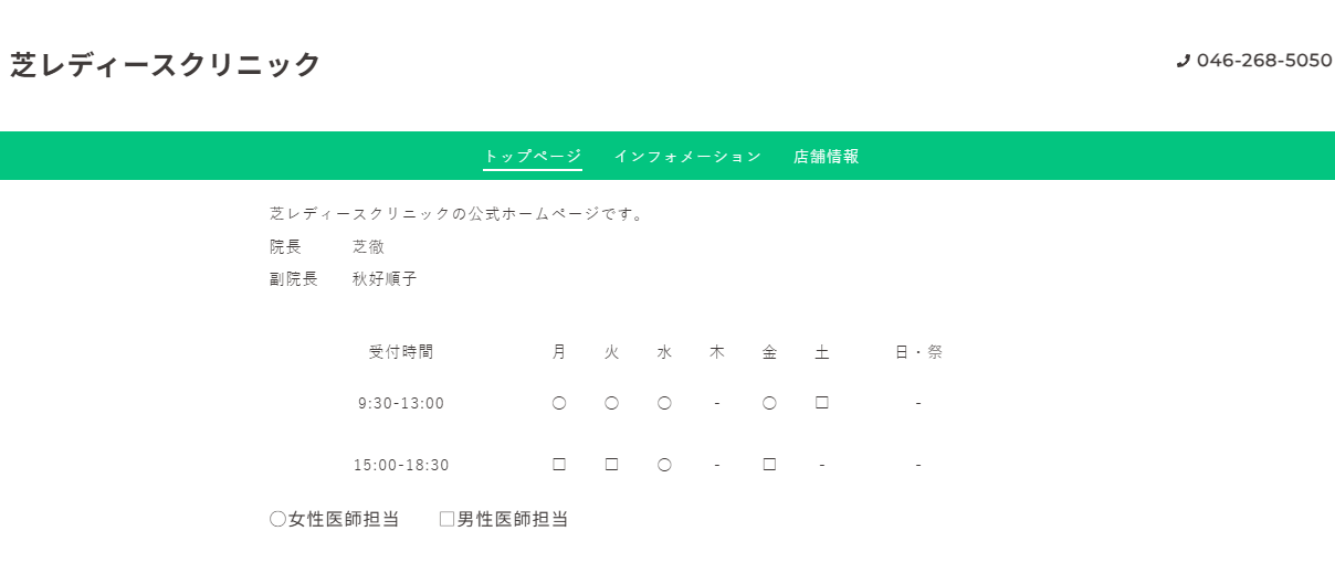 | 女性医師 | 在籍(女性医師による診療日あり) |