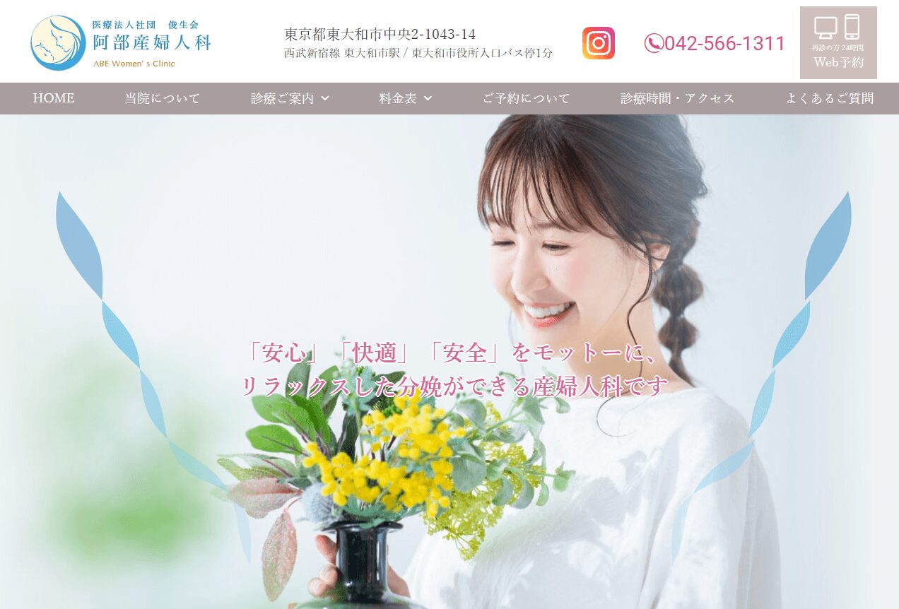 「阿部産婦人科」は玉川上水駅からは車で9分ですが、東大和市駅から徒歩20分という好立地がおすすめポイントです。