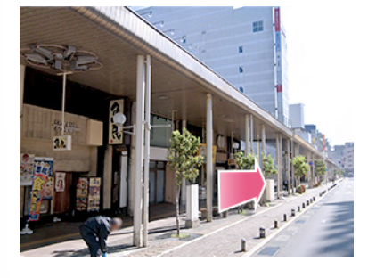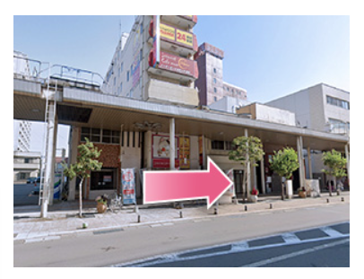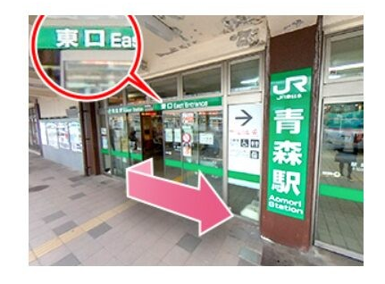 - ①JR青森駅東口から出て左に曲がります。