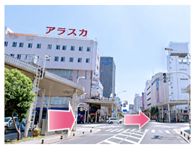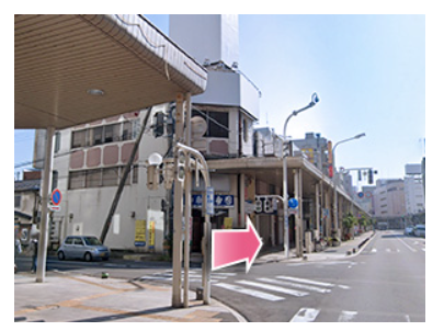 - ③目の前の横断歩道を渡って右へ進んでください