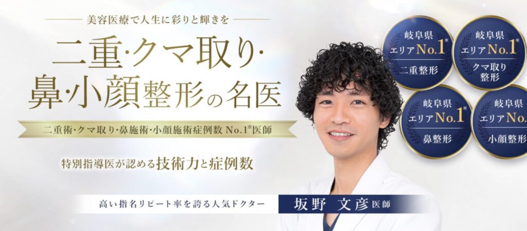 特に院長の坂野先生は岐阜県エリアで「二重整形」の症例数No.1。