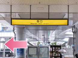 - ②西口の1階出口から外に出たら、左に曲がってまっすぐ進んでください。