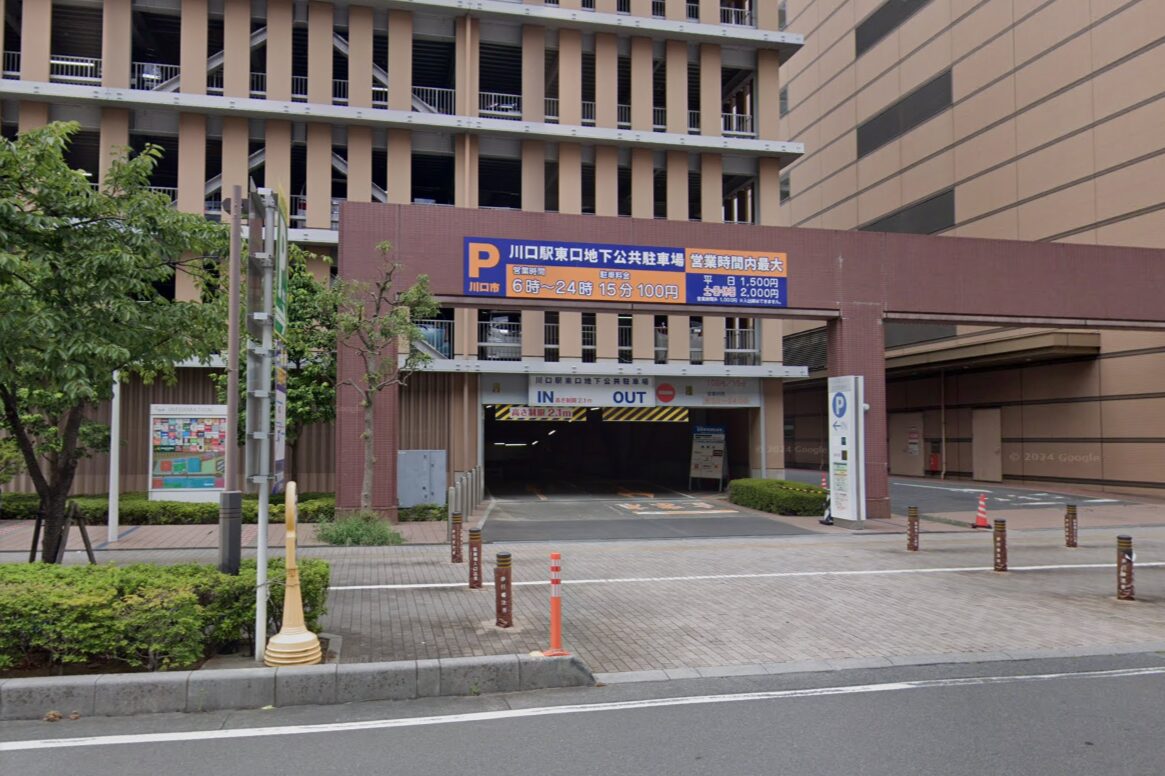 | 川口駅東口地下公共駐車場 | 埼玉県川口市川口1丁目1−23 ・15分毎/100円 1日最大料金(24時迄) ・平日/1500円 ・土日祝/2000円 (営業時間外は入出庫不可) 営業時間:6:00~24:00 定休日:無休 |