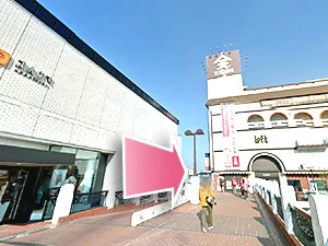 - ①JR倉敷駅南口から出て左へ曲がります。