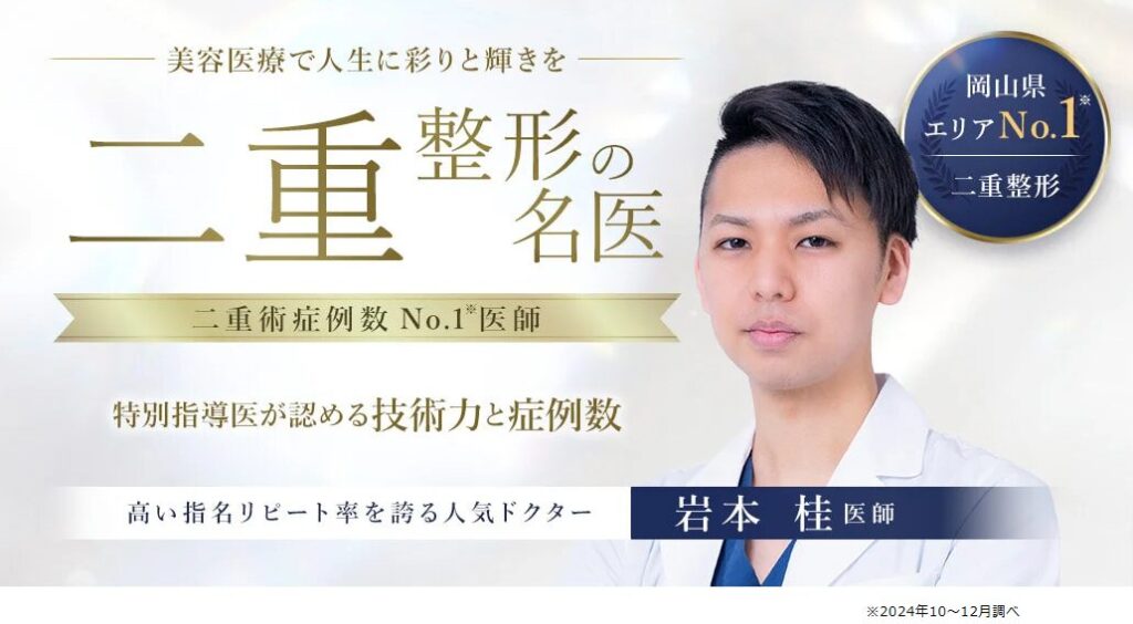 倉敷院には岡山エリアで「二重整形」症例数NO.1で二重整形のスペシャリストである岩本先生の評判が非常に良いので、迷ったら岩本先生を頼るといいですね。