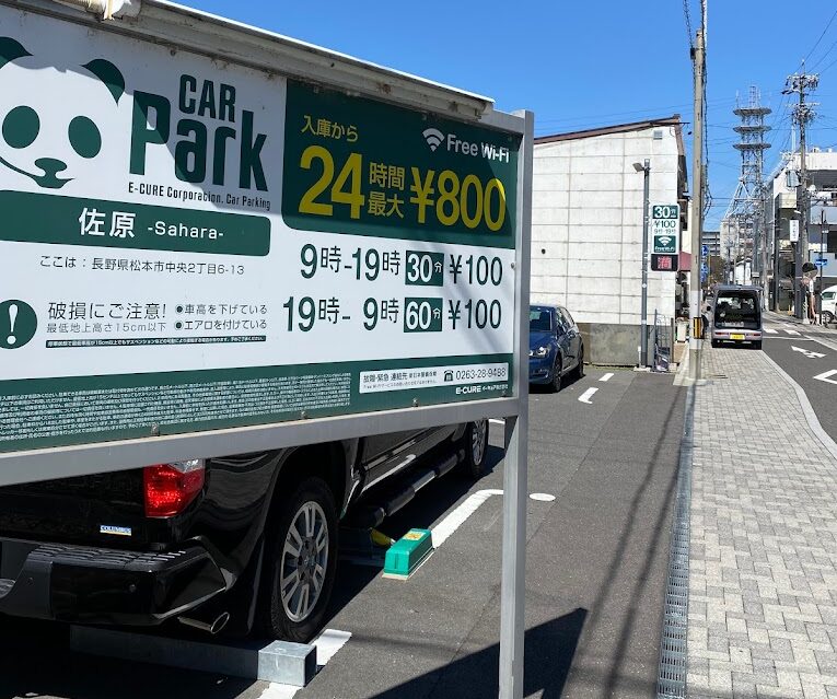 | CAR Park佐原駐車場 | 長野県松本市中央2丁目6-13 ・9:00-19:00 30分/100円 ・19:00-9:00 60分/100円 ・入庫から24時間最大 800円 営業時間:24時間営業 定休日:無休 |