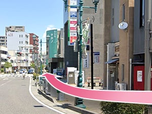- ⑫横浜幸銀信用組合を通り過ぎ、HERBAR HOUSEの手前を左に曲がってください。