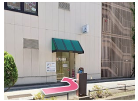 - ②出口から出たら右に曲がってください。