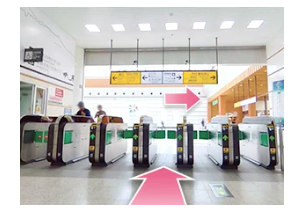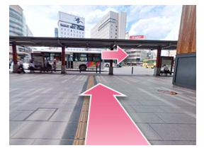 - ①長野駅改札を出て右に曲がります。
