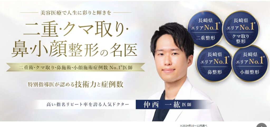 さらに、長崎エリアで「二重整形」「クマ取り整形」「鼻整形」「小顔整形」の症例数がNO.1の先生でもあります。