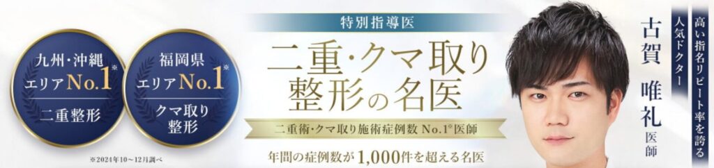 さらに、九州・沖縄エリアで「二重整形」、福岡エリアで「クマ取り整形」の症例数がNO.1の先生でもあります。