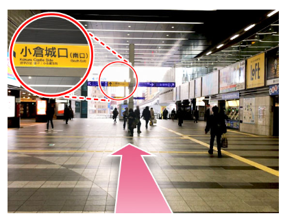 - ④小倉城口(南口)から出たら、しばらく真っすぐ進んでください。