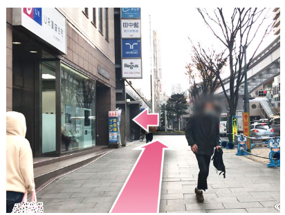 - ⑥曲がるとすぐ左手にエスカレーターが見えますので、下に降りてください。