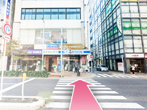 - ④少し進むと、左手に見えるのが当クリニックが入居する岡本ビルです。