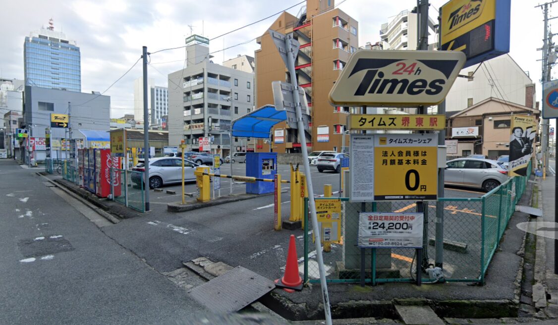 | タイムズ堺東駅 | 大阪府堺市堺区北瓦町2丁3 ・45分毎/440円 最大料金(繰越適応) ・駐車後5時間/1540円 営業時間:24時間 定休日:無休 |