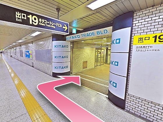- ①さっぽろ駅北口改札を出て後ろに進んでください。