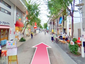 - ①片原町駅から出たら左に曲がり、高松片原町西部商店街の中に入ります