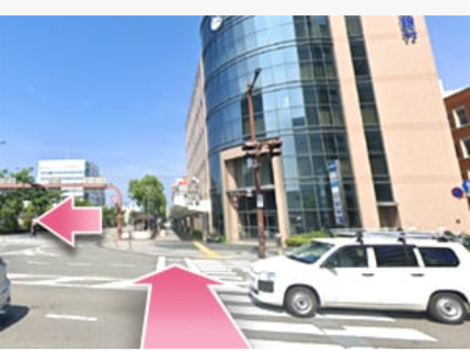 - ②中央口から出たら右へ曲がります。