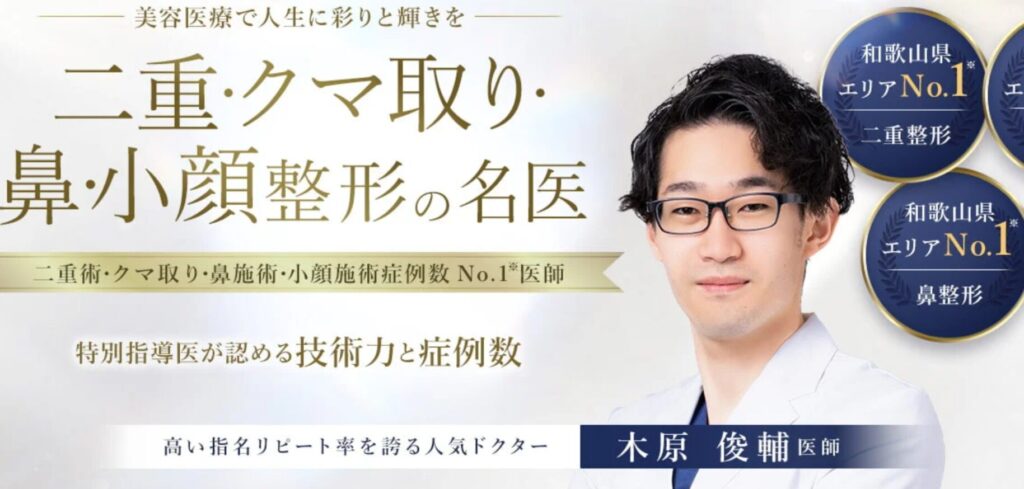 さらに、和歌山エリアで「二重整形」「クマ取り整形」の症例数がNO.1の先生でもあります。