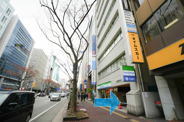 ⑤道なりに進み、1Fにファミリーマートのあるビルの6Fにあります。