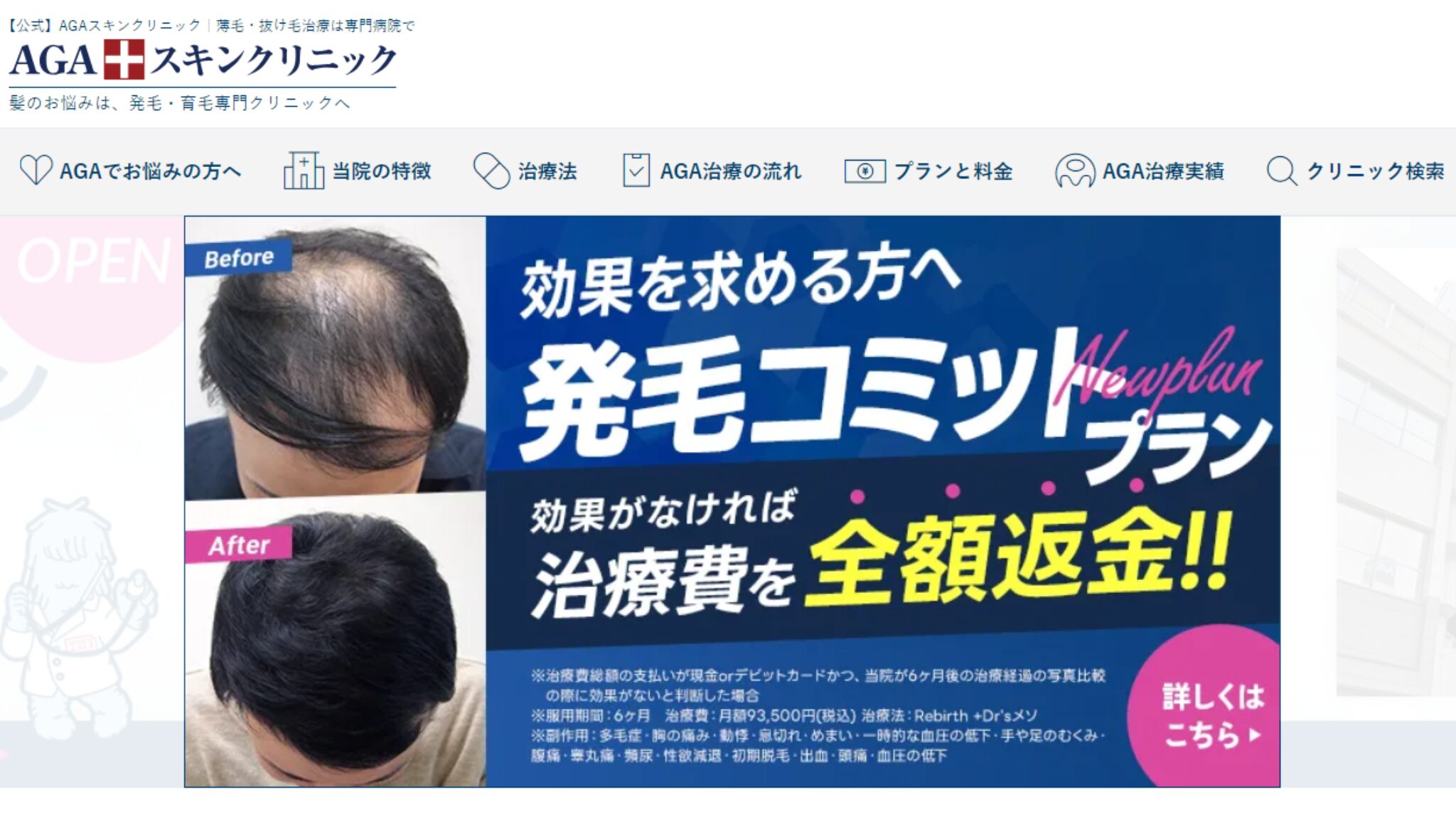 業界最大手レベルのAGAクリニックでしっかり治療して、必ず薄毛(男性型脱毛症)を克服するという強い覚悟がある人は、下記の公式サイトをチェックしておきましょう。