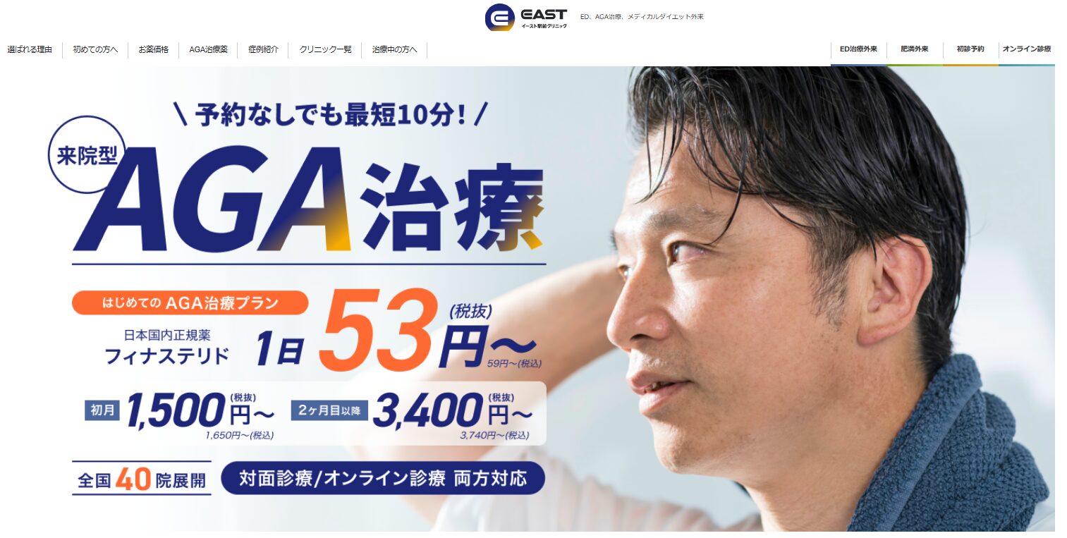 ただそこまで本格的な治療は求めておらず、月数千円レベルの内服薬(+外用薬)をサクッと処方してほしいなら「イースト駅前クリニック」がおすすめです。
