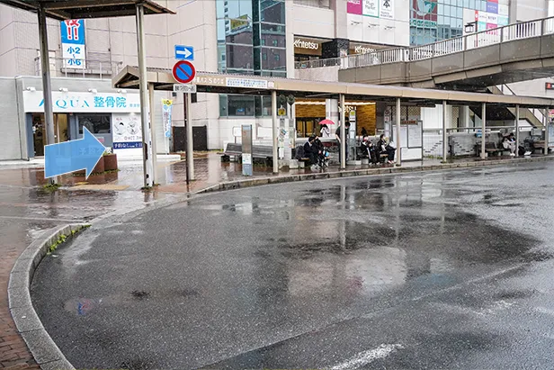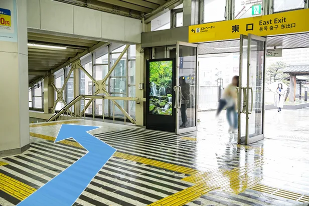 ①JR「草津駅」東口(北側)へ向かい、左手の階段を降ります。