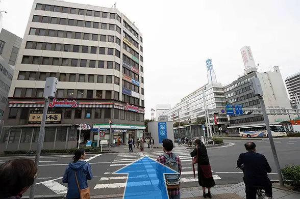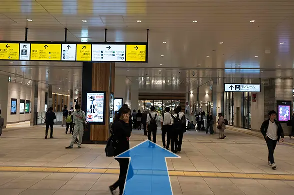 ①JR「千葉駅」中央改札から東口へ向かい、エスカレーターで下に降ります。