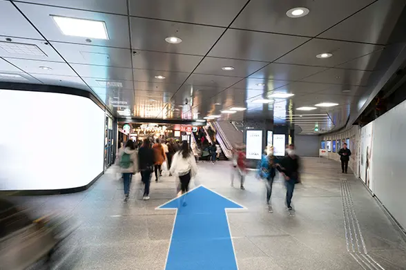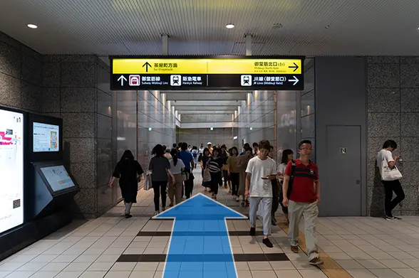 ①JR「大阪駅」中央口を出て御堂筋線の方へ向かいます。