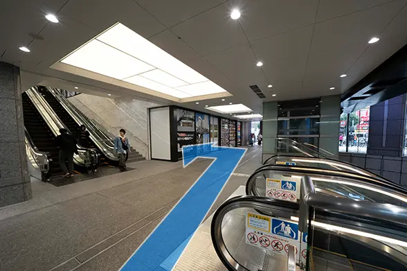 ②御堂筋北口を出て、御堂筋線の方へエスカレーターを降ります。