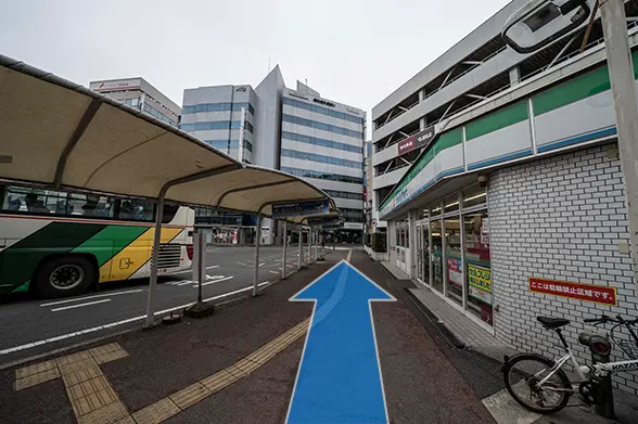 ⑤道なりに進み、ファミリーマートと立体駐車場を右手に過ぎます。