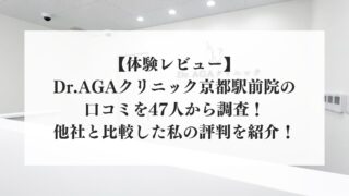 本記事ではDr.AGAクリニック京都駅前院の口コミについて、実際にクリニックのカウンセリングと診察を受けた私が徹底紹介します。私の体験談はもちろん、ネット上の口コミを47件調べた結果も合わせて紹介するので、他社との違いを知りたい方は、ぜひ参考にしてみて下さいね。