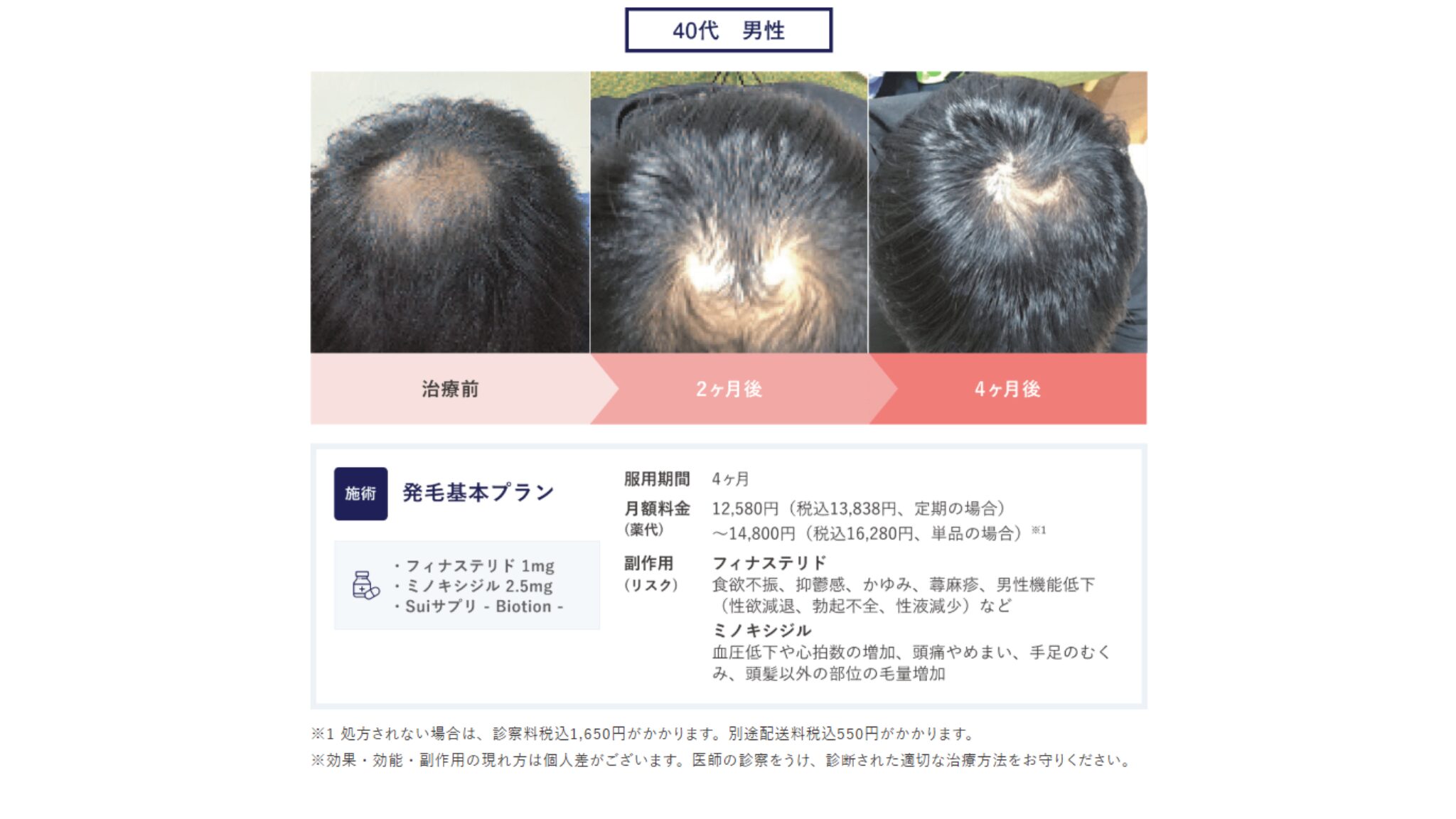 特に予防目的でAGA治療をスタートしたい方にとっては、1,000円台から利用できるのは大きな魅力です。