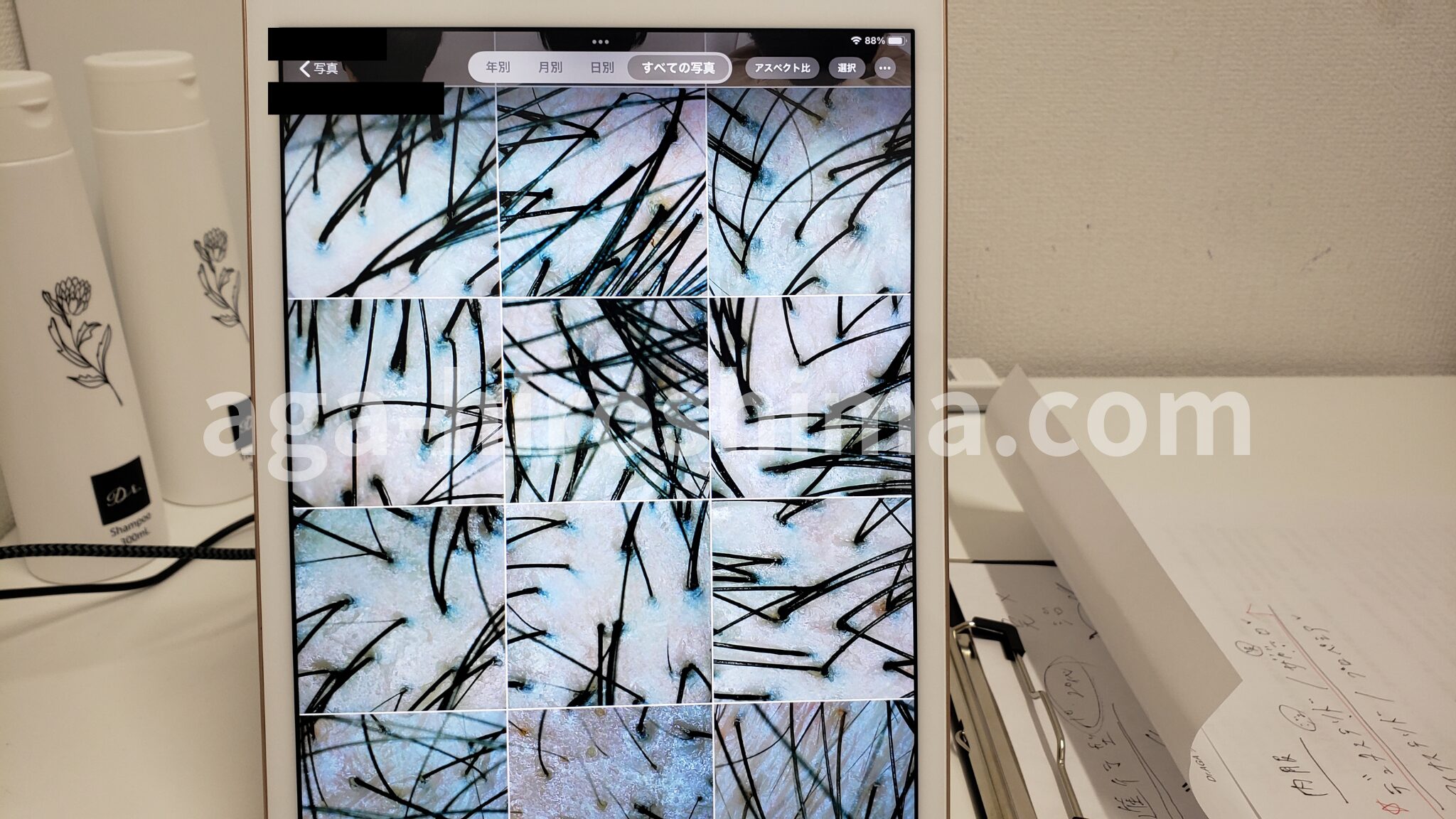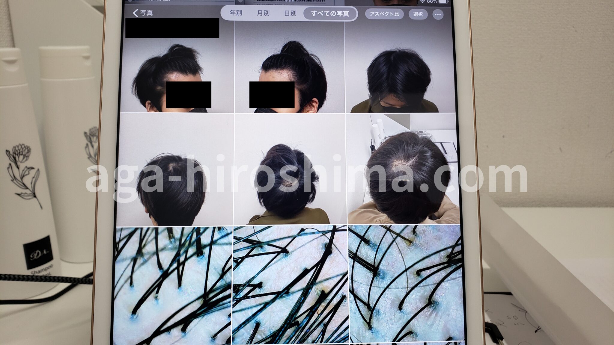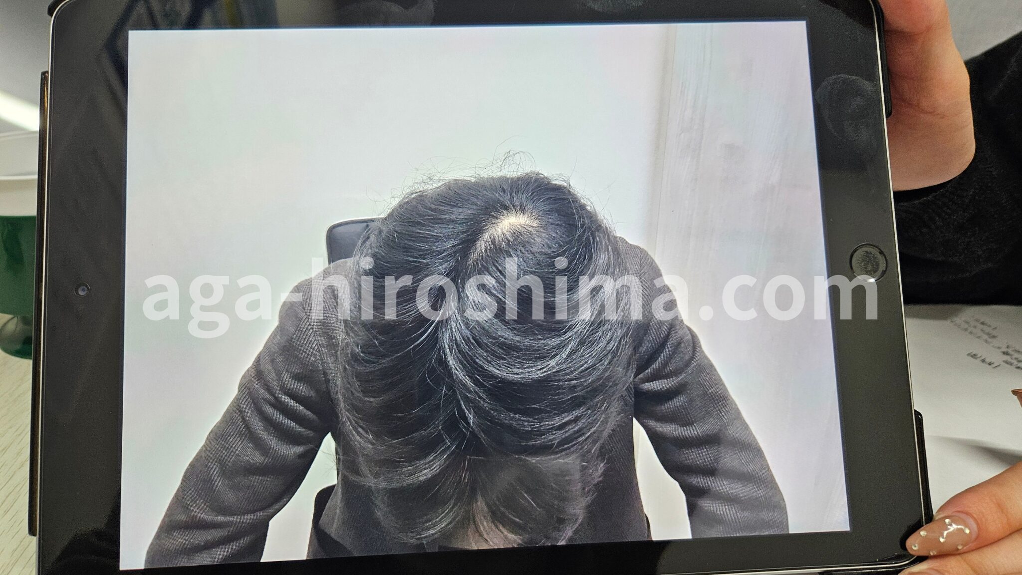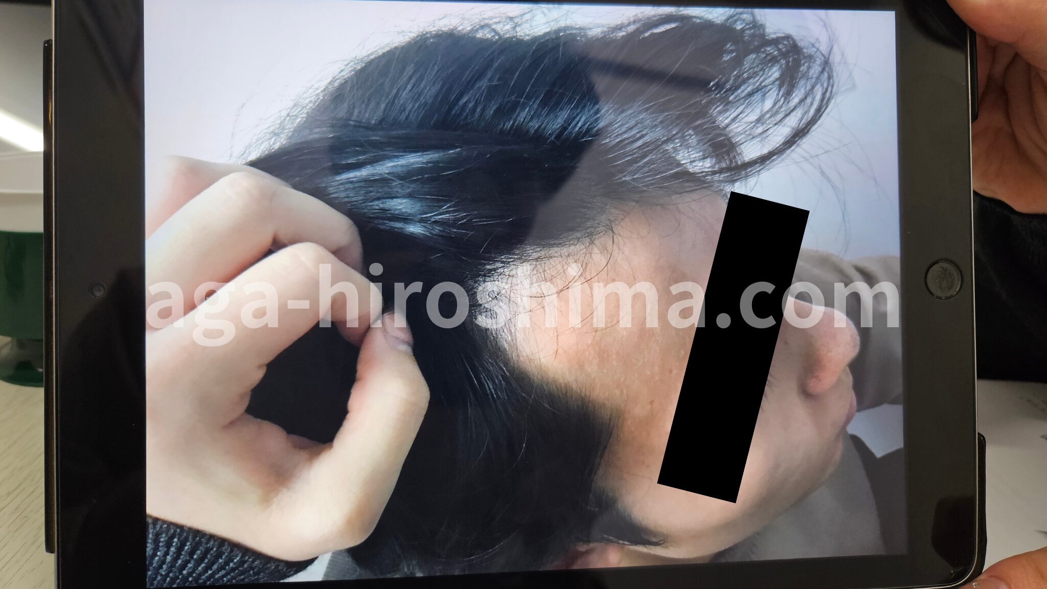 私の口コミ②:タブレットで撮影しながらAGAの症状を客観的に分析