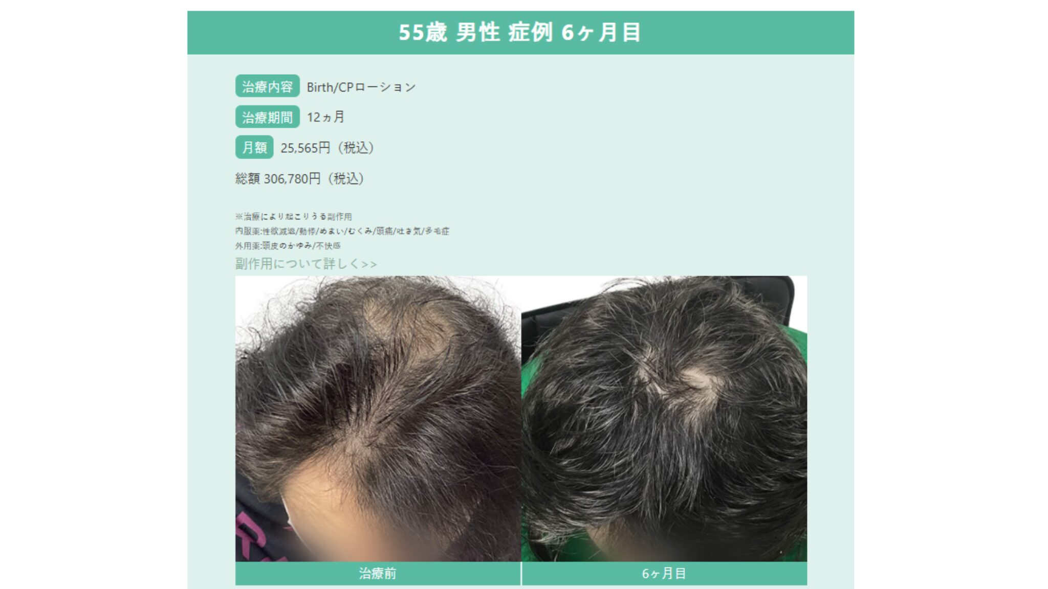 ほとんどの方が約1ヶ月程で抜け毛が止まり、約3ヶ月程で発毛を実感しています。