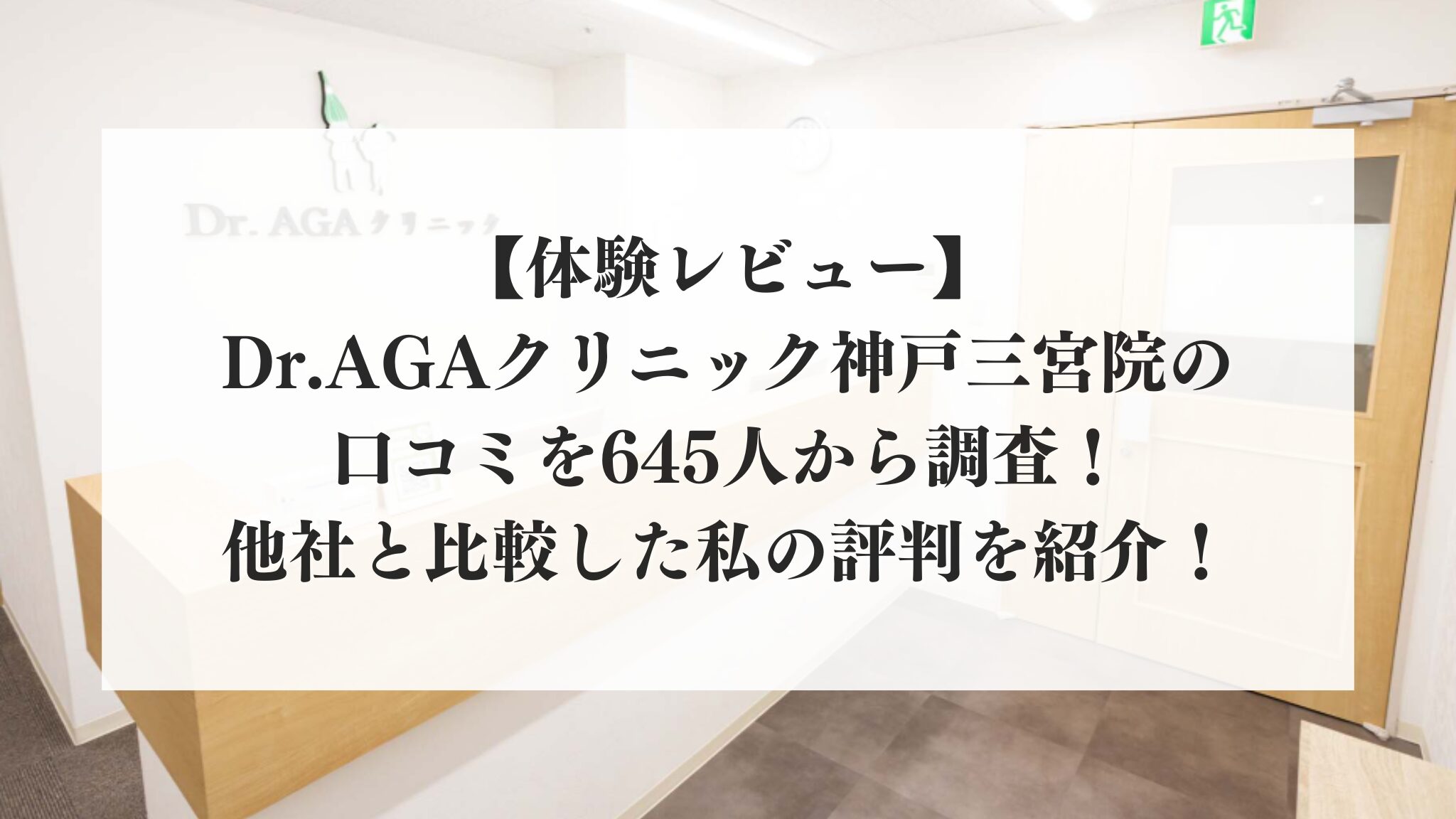 本記事ではDr.AGAクリニック神戸三宮院の口コミを645人から調査した結果について、実際にクリニックで治療をした私が徹底紹介します。
